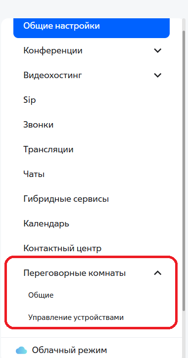 3. Перейдите в раздел “Общие настройки” ⇢ “Переговорные комнаты”.