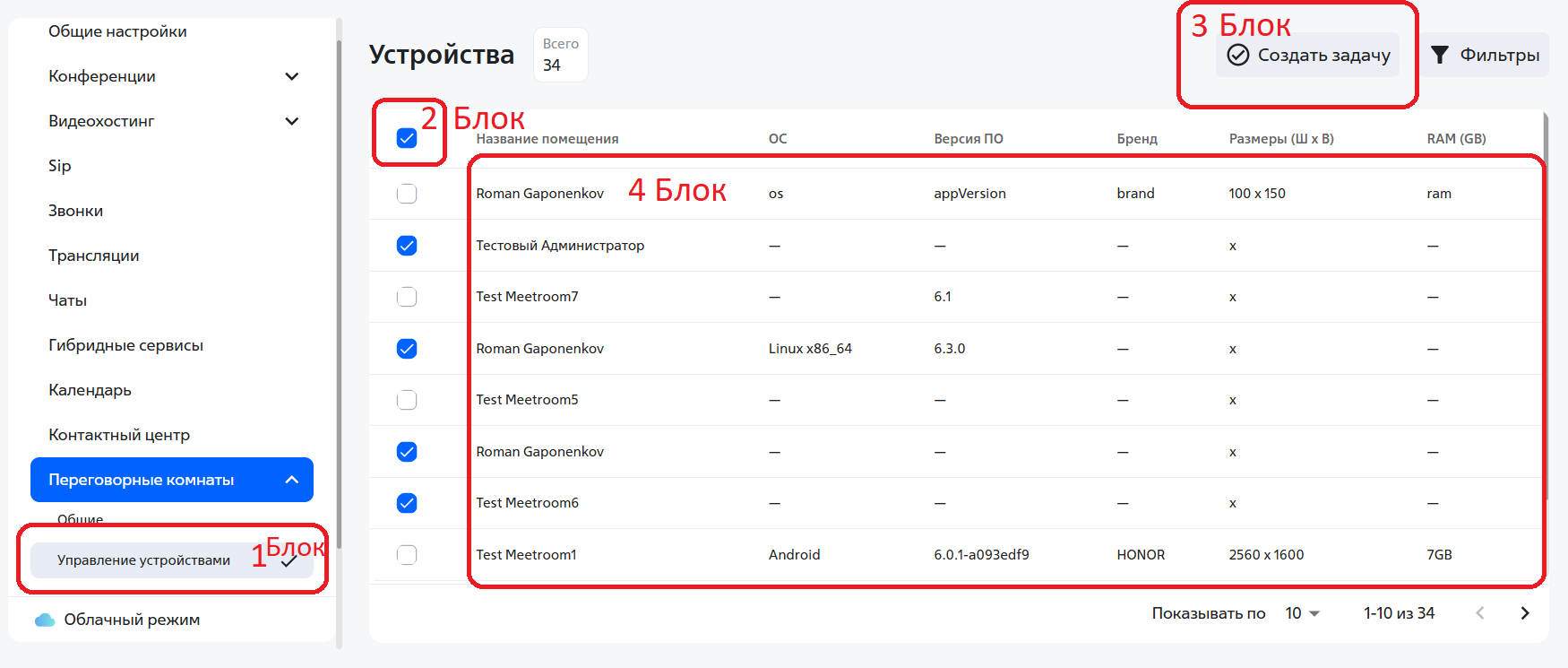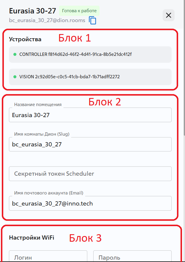 Блок 2 (Основной) Данный блок предназначен для настройки переговорной комнаты.