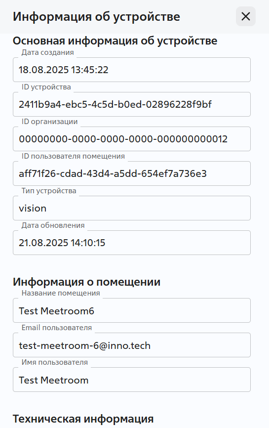 2. После входа проверьте настройки, указанные в Панели Администратора для данной переговорной комнаты. Если обнаружили ошибку, измените настройки.