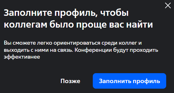 Примечание! Поле Ваша должность не является обязательным для заполнения. Однако напоминание заполнить профиль будет отображаться до тех пор, пока вы его не заполните.