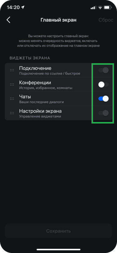 Чтобы активировать настройку, переведите переключатель в активное положение.