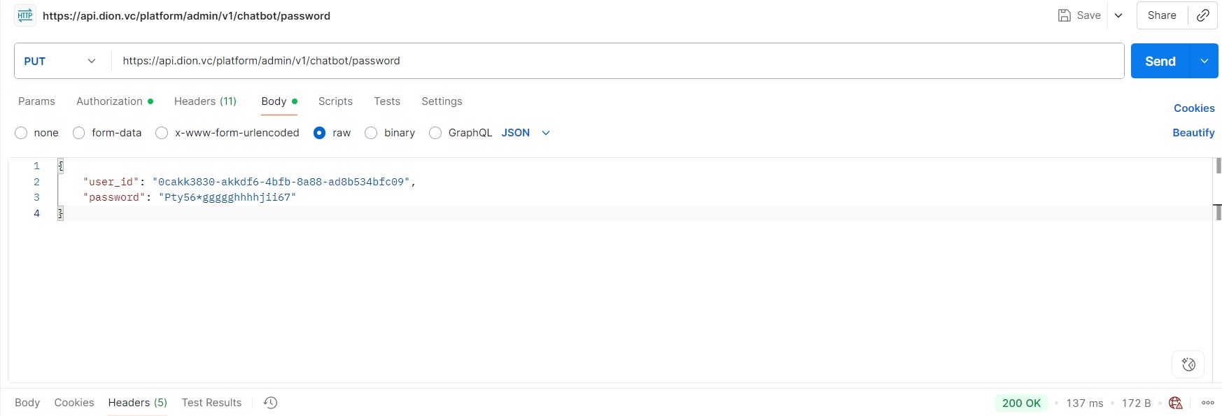 Для задания/изменения пароля используется метод PUT https://api.dion.vc/platform/admin/v1/chatbot/password
