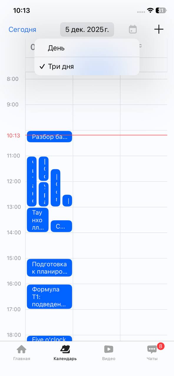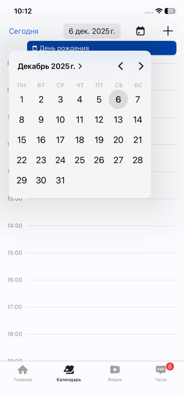 Календарь позволяет отображать события из основной почты вашей организации. Вы увидите информацию об участниках и статусе принятия событий.