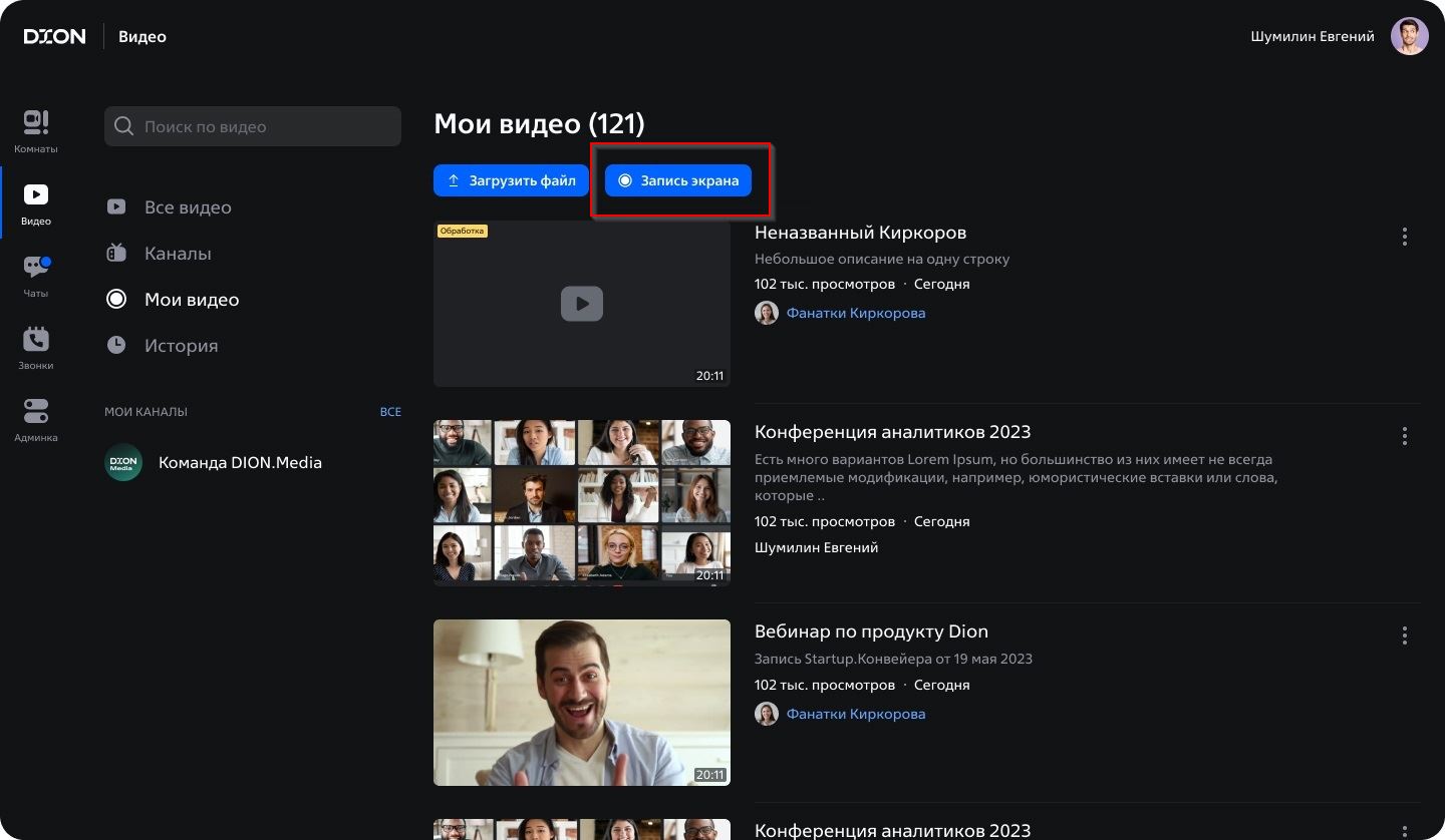 Создать канал может любой желающий, видео в него добавляются из раздела «Мои видеозаписи», где хранятся записи конференций, которые вы производили. Также в раздел «Мои видеозаписи» можно загрузить свое видео и затем добавить его в канал.