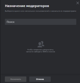 💡 Поиск модератора можно осуществлять по ФИО или корпоративной электронной почте (второй вариант более надежный, т.к. ФИО могут совпадать, а пользователь может не указывать его).