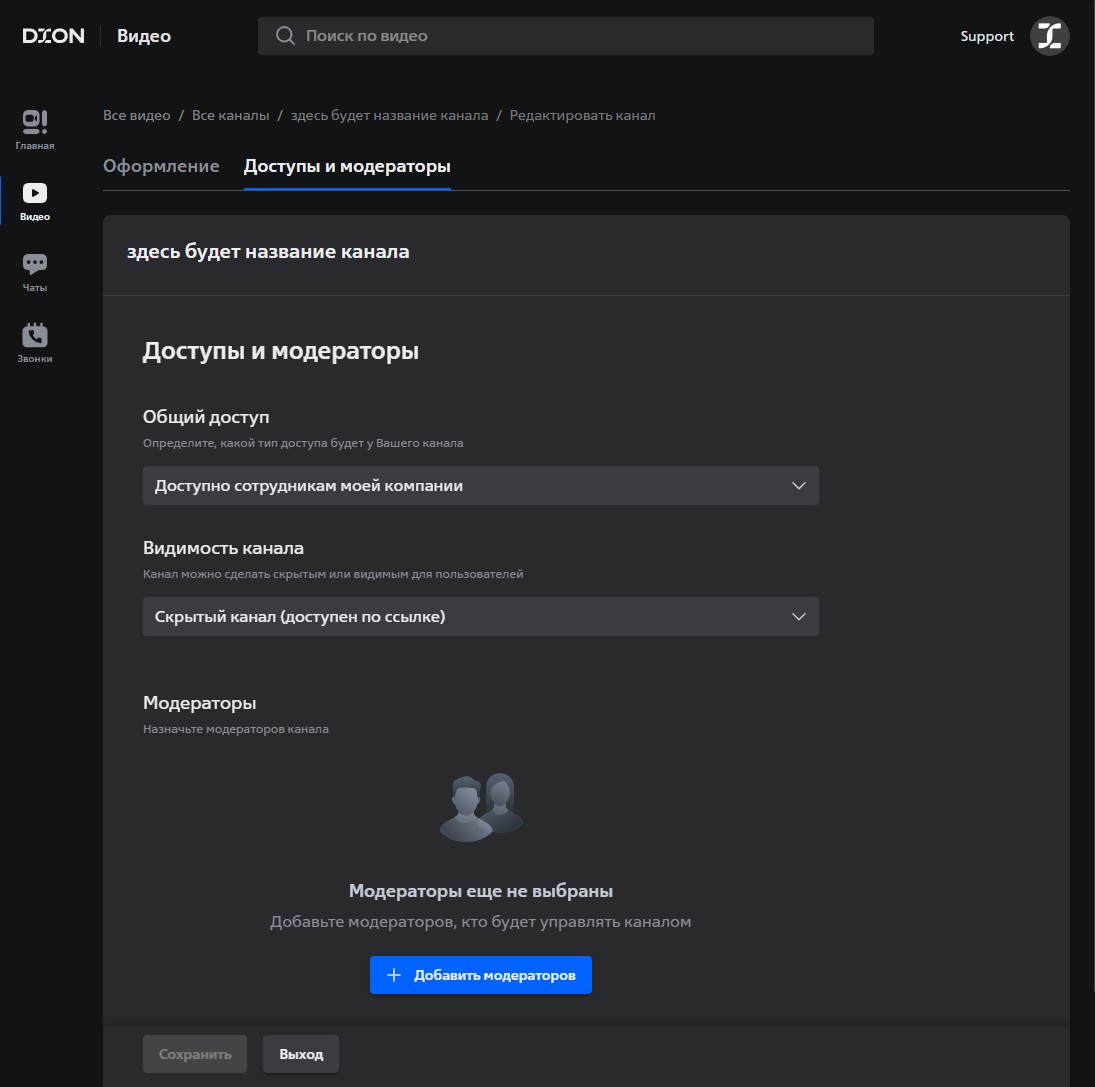 💡 Канал — это страница с видеозаписями, которые могут быть доступны только вашей организации/группе компаний/только по прямой ссылке на канал, в зависимости от установленных вами настроек.