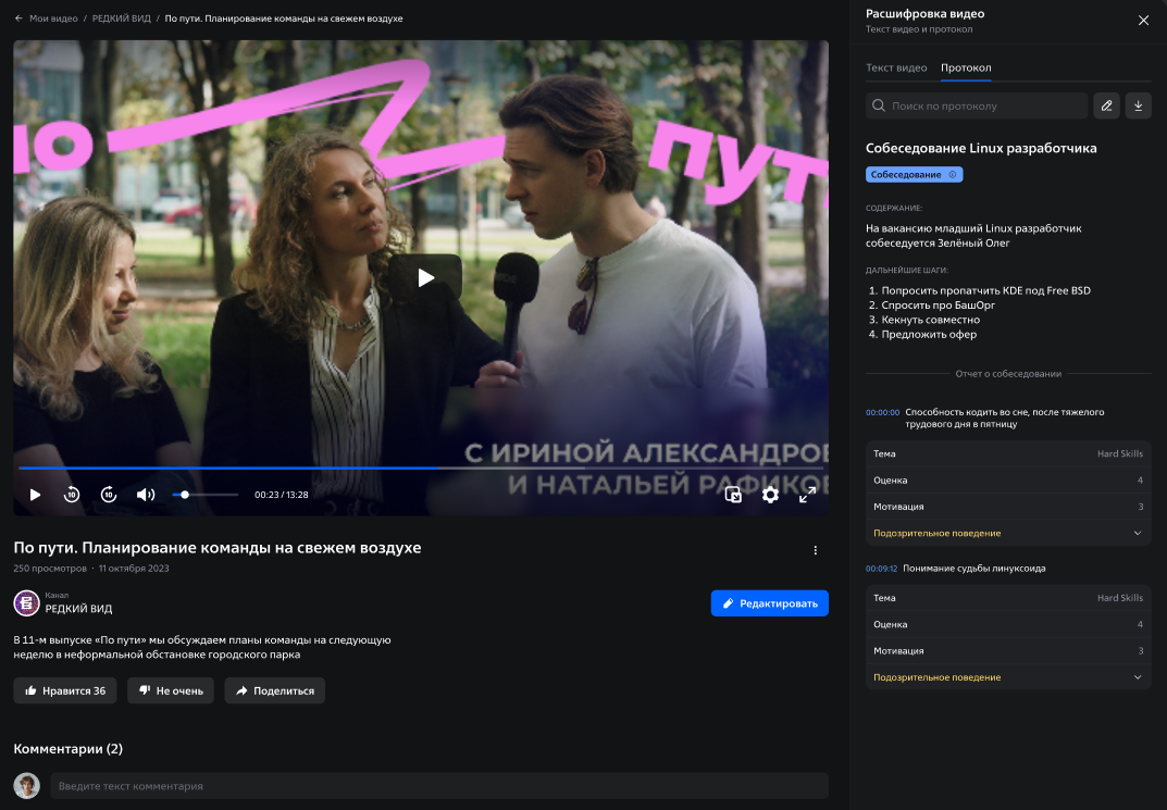 Протокол доступен только для видео, добавленных или размещённых после 30.09.2025.