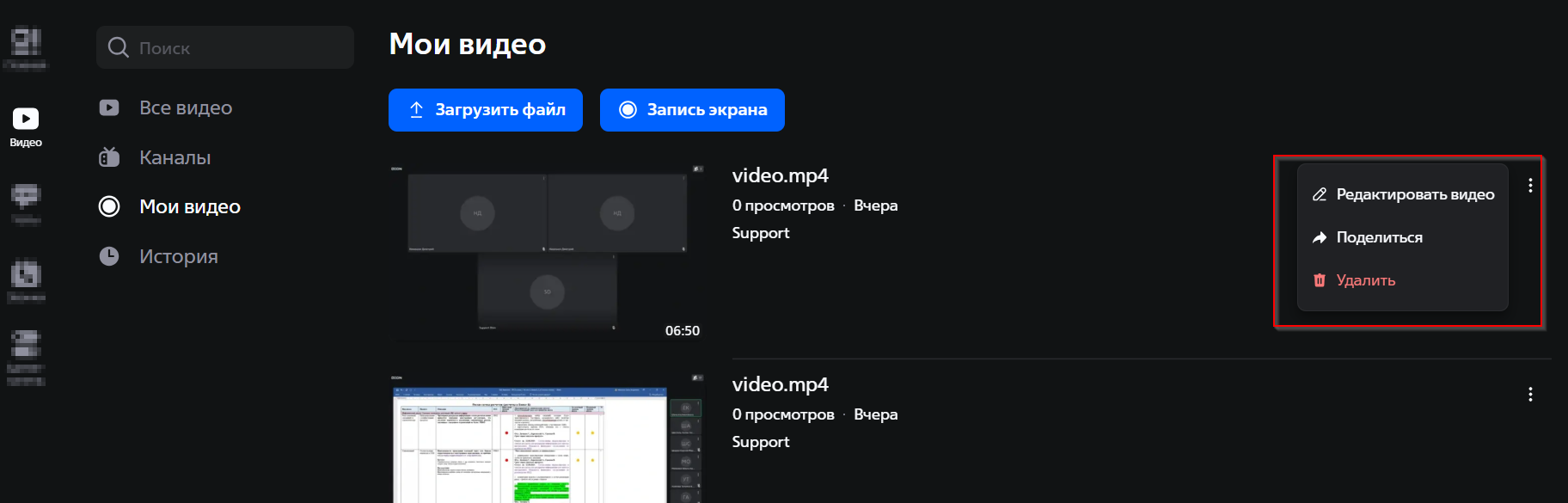 Такие записи тоже будут отображаться в разделе “Мои видео”