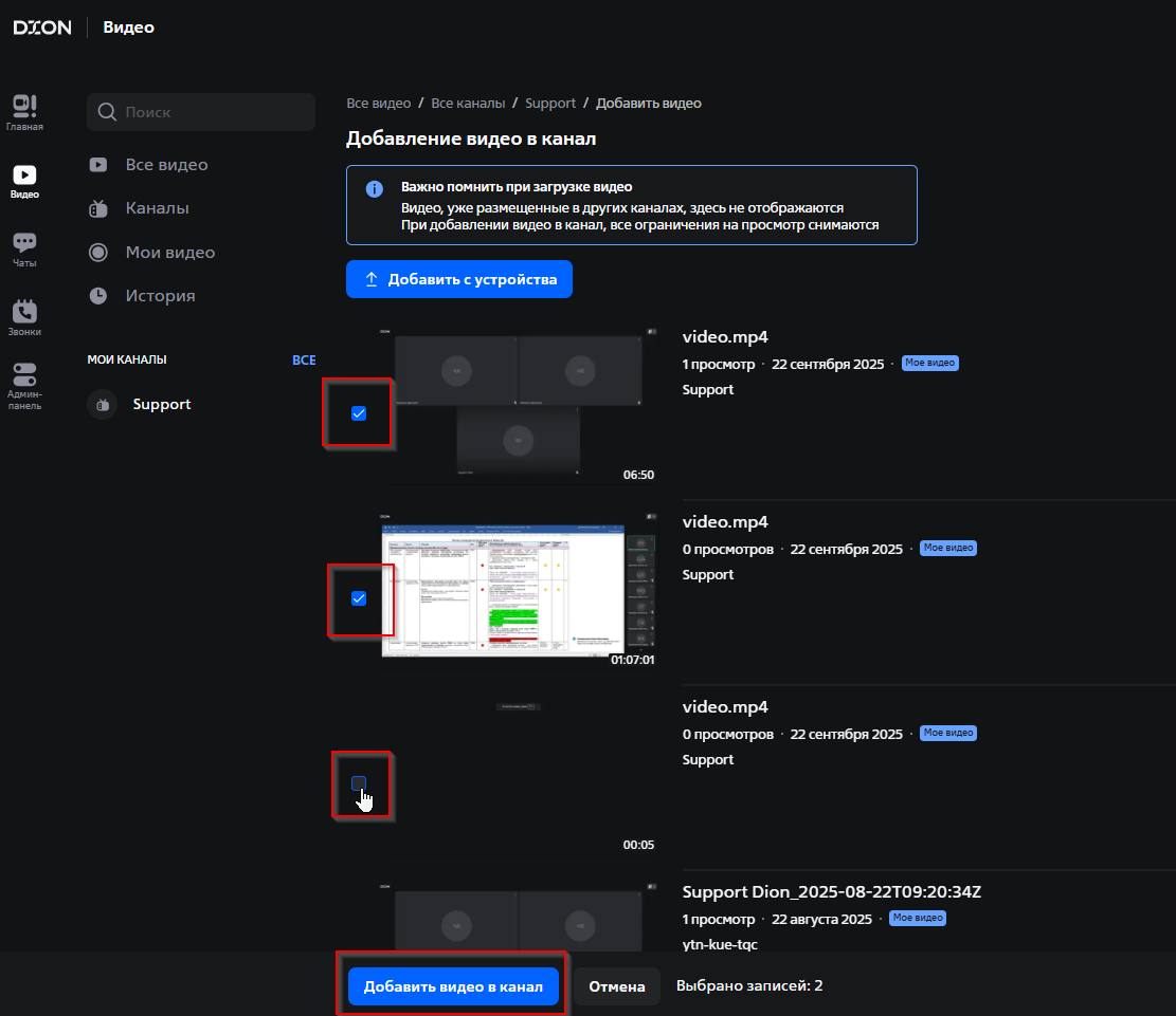 ❗️ Передача прав на видео доступна только внутри организации (переносить видео на учетную запись другой организации запрещен).