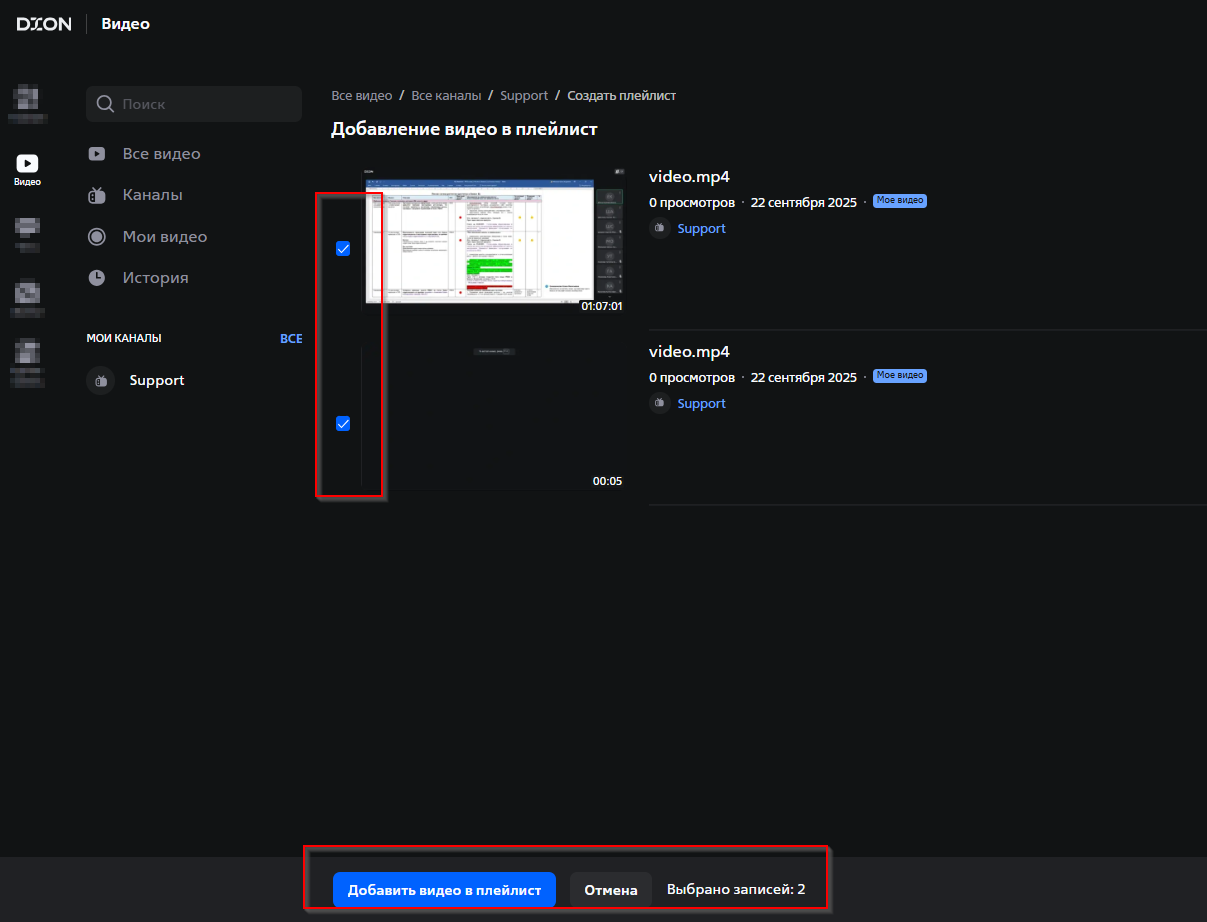 ❗ В канал можно добавить только те видео/аудиозаписи, которые находятся у пользователя в разделе «Мои видеозаписи».