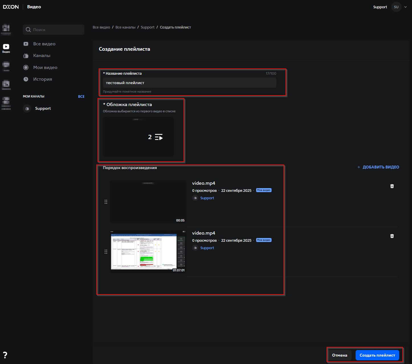 💡 Плейлист необходим в тех случаях, когда канал имеет много файлов, и к одной тематике относятся две и более записей. С помощью плейлистов вы можете разделить канал на темы, добавлять для каждой темы (плэйлиста) подходящие видео/аудиофайлы и отправлять пользователям ссылку сразу на сделанную вами подборку, что позволит сэкономить время пользователей на поиск интересующих записей внутри вашего канала.