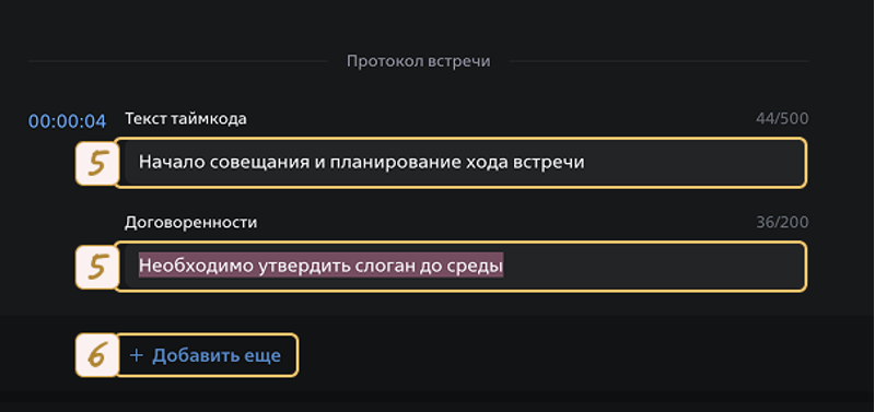 Функциональность редактирования протокола и текста расшифровки видео позволяет владельцу и модераторам записи уточнять и адаптировать автоматически сформированный протокол и расшифровку под свои задачи: корректировать формулировки, расставлять акценты, добавлять пояснения и правки в текст, а также структурировать информацию так, чтобы протокол и текст расшифровки видео были максимально удобны для дальнейшей работы.