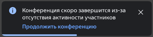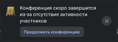 - подтверждение продолжения конференции (нажатие кнопки в уведомлении);