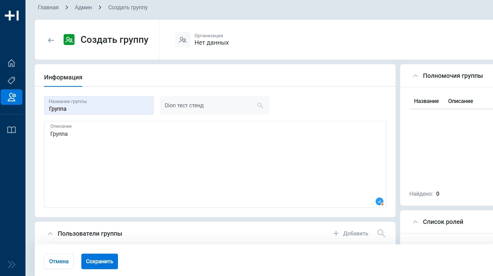 1. В разделе Администрирование на вкладке Группы нажмите на кнопку Создать.