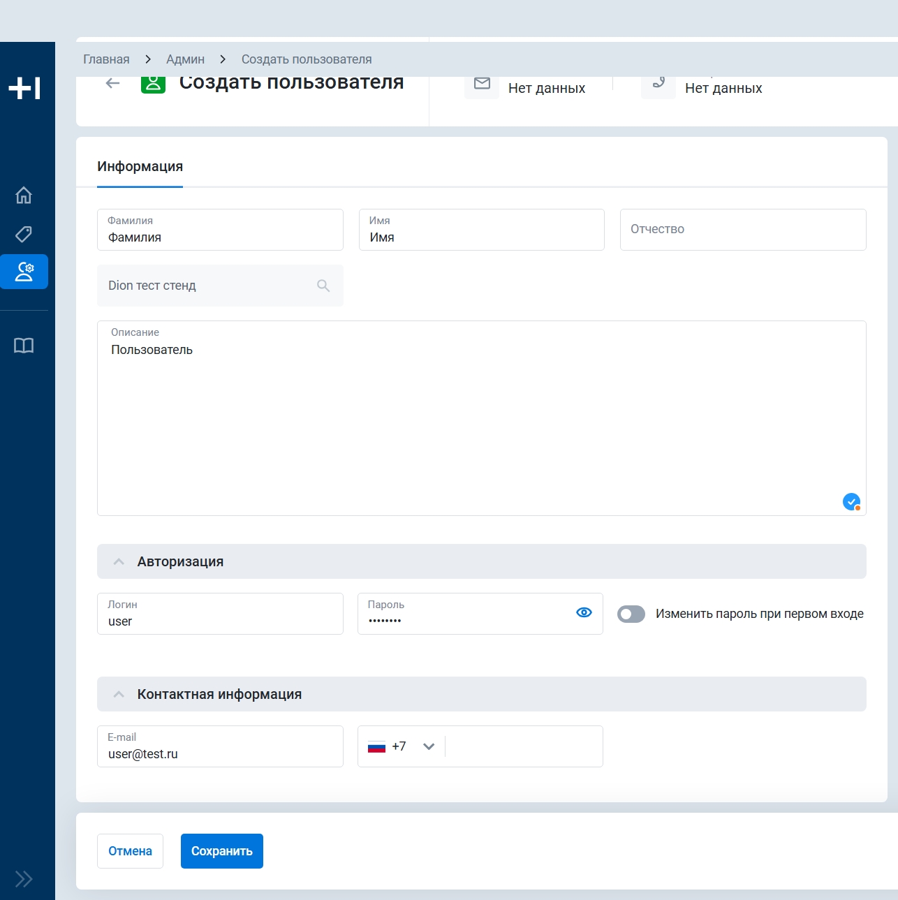 2. В разделе Информация введите ФИО пользователя и заполните поле Описание.